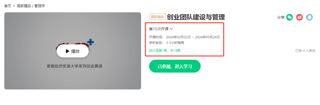MOOC慕课《创业团队建设与管理》2024春季课程已经准备就绪